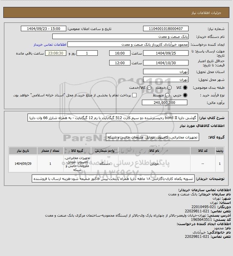 نام دستگاه خریدار:بانک صنعت و معدن