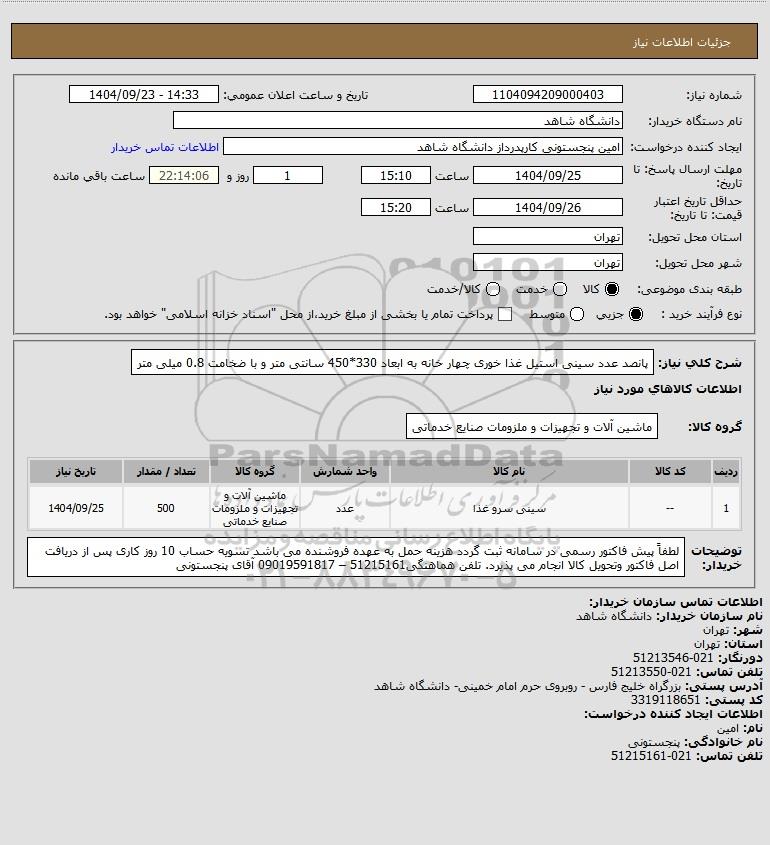 نام دستگاه خریدار:دانشگاه شاهد