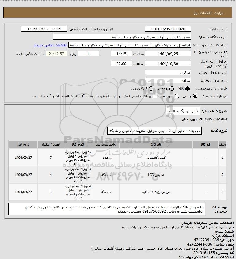 نام دستگاه خریدار:بیمارستان تامین اجتماعی شهید دکتر چمران ساوه