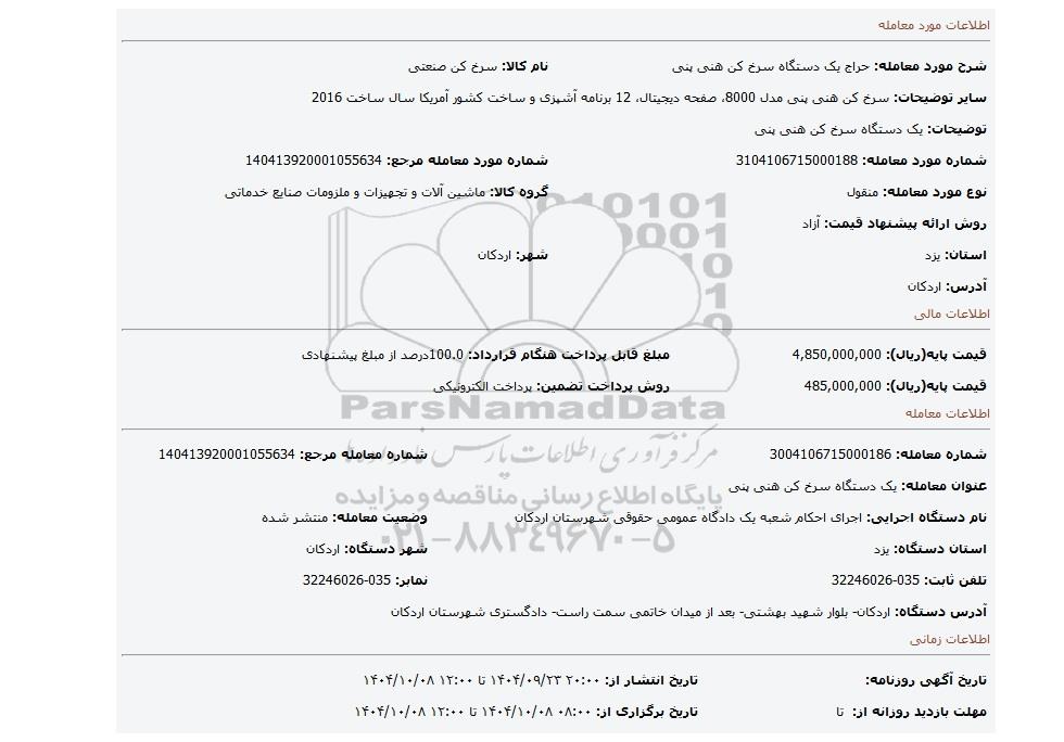 شماره مورد معامله: 3104106715000188شماره مورد معامله مرجع: 140413920001055634