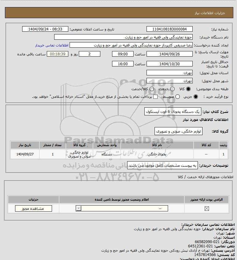 نام سازمان خریدار: حوزه نمایندگی ولی فقیه در امور حج و زیارت