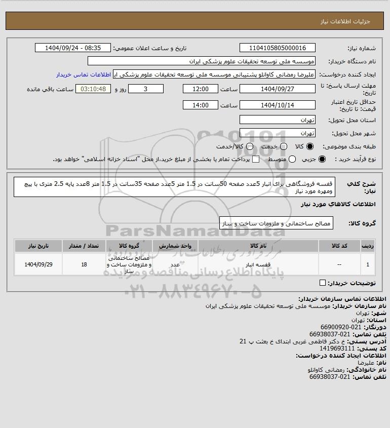 نام دستگاه خریدار:موسسه ملی توسعه تحقیقات علوم پزشکی ایران