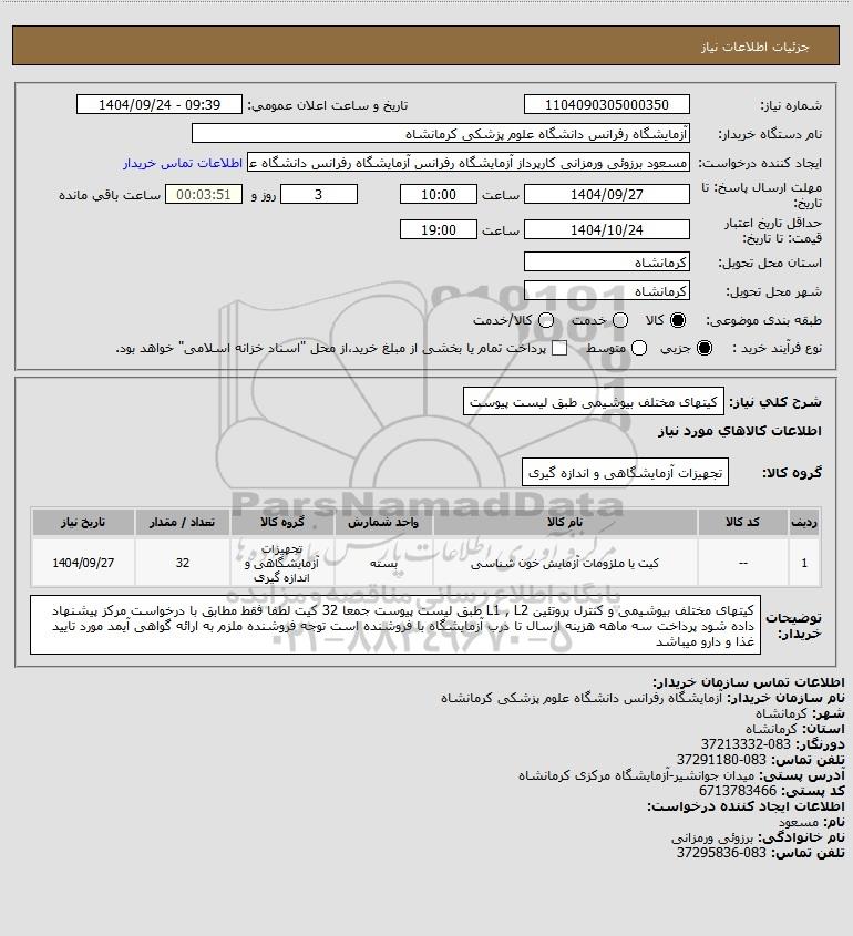 نام سازمان خریدار: آزمایشگاه رفرانس دانشگاه علوم پزشکی کرمانشاه