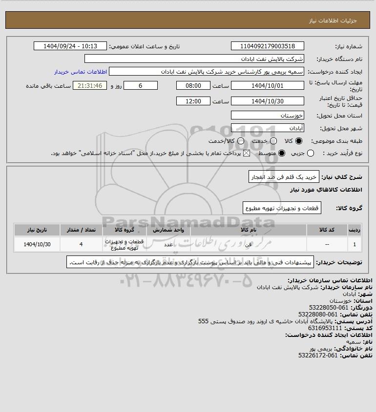 نام دستگاه خریدار:شرکت پالایش نفت ابادان