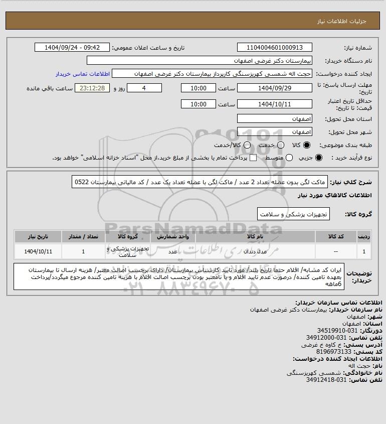 شرح کلی نیاز: ماکت لگن بدون عضله تعداد 2 عدد / ماکت لگن با عضله تعداد یک عدد / کد مالیاتی بیمارستان 0522