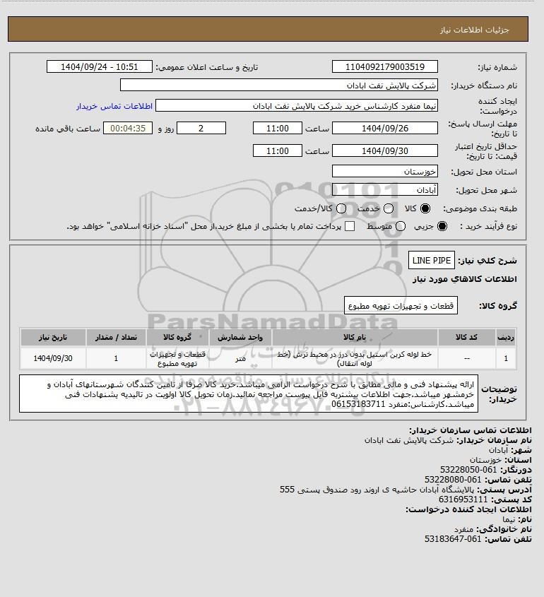 نام سازمان خریدار: شرکت پالایش نفت ابادان