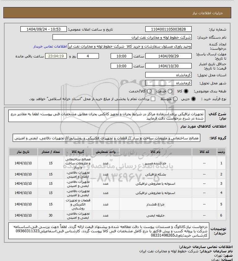 | 3 | -- | استوانه یا مخروطی ترافیکی | عدد | تجهیزات دفاعی، ایمنی و امنیتی | 15 | 1404/10/10 |