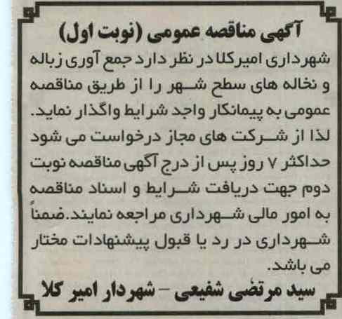 - آگهی مناقصه واگذاری امور خدمات شهری فضای سبز و رفت و روب