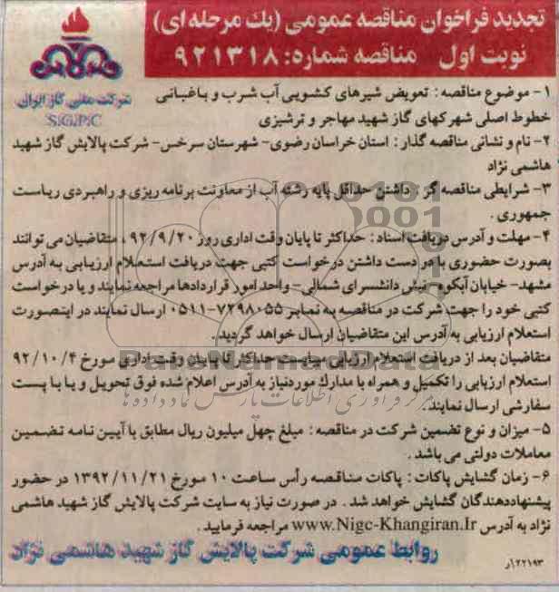 نام و نشانی مناقصه گزار: استان خراسان رضوی - شهرستان سرخس - شرکت پالایش گاز شهید هاشمی نژاد