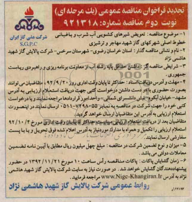 نام و نشانی مناقصه گزار: استان خراسان رضوی - شهرستان سرخس - شرکت پالایش گاز شهید هاشمی نژاد