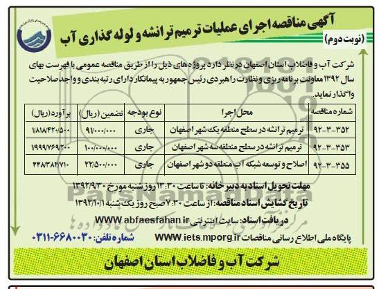 | 92-3-353 | ترمیم ترانشه در سطح منطقه سه شهر اصفهان | جاری | 100.000.000 | 1.999.769.200 |
