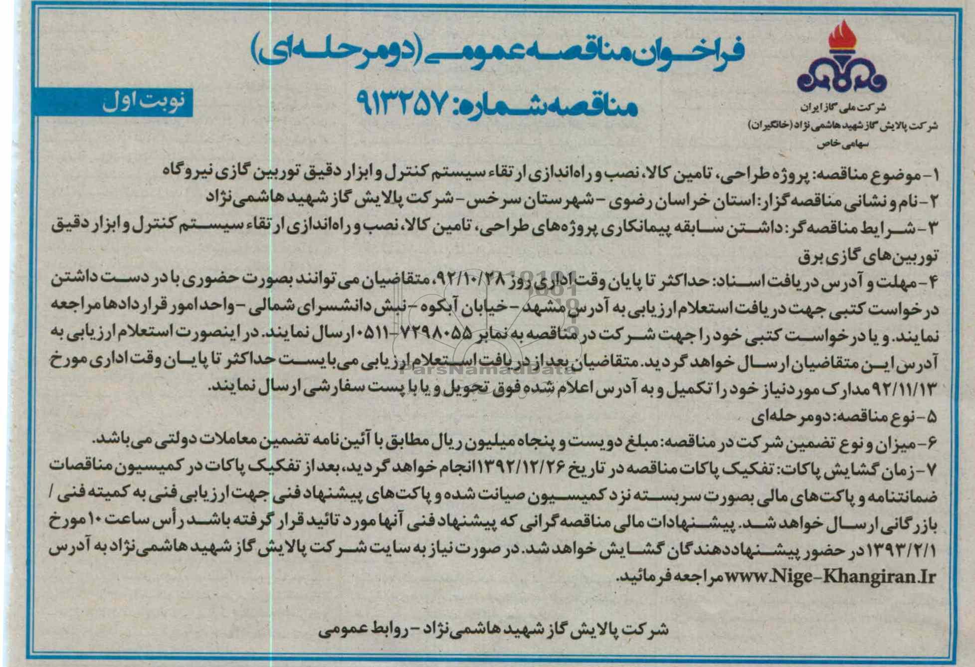 نام و نشانی مناقصه گزار: استان خراسان رضوی، شهرستان سرخس، شرکت پالایش گاز شهید هاشمی نژاد