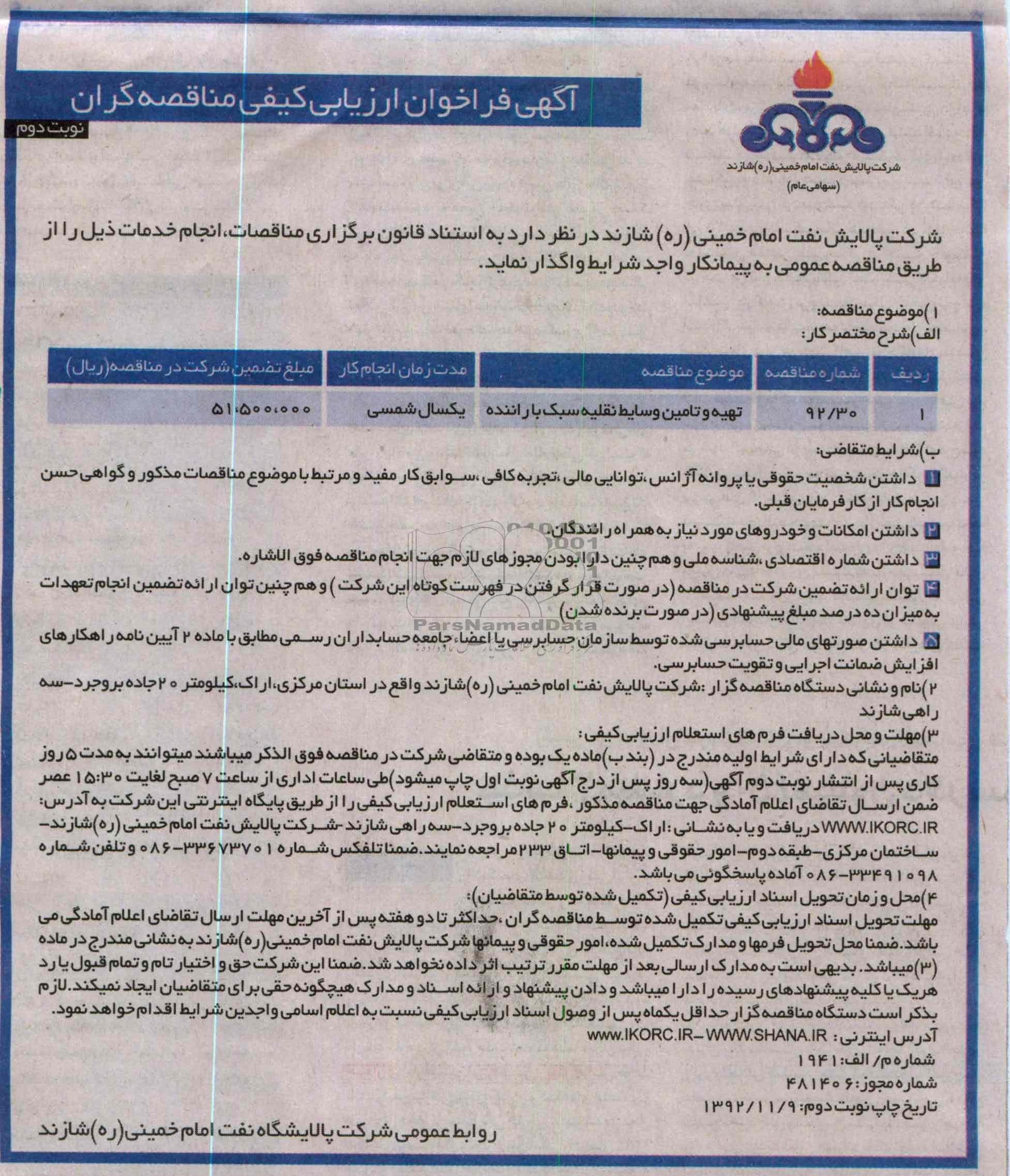 شماره مناقصه: 30/92
