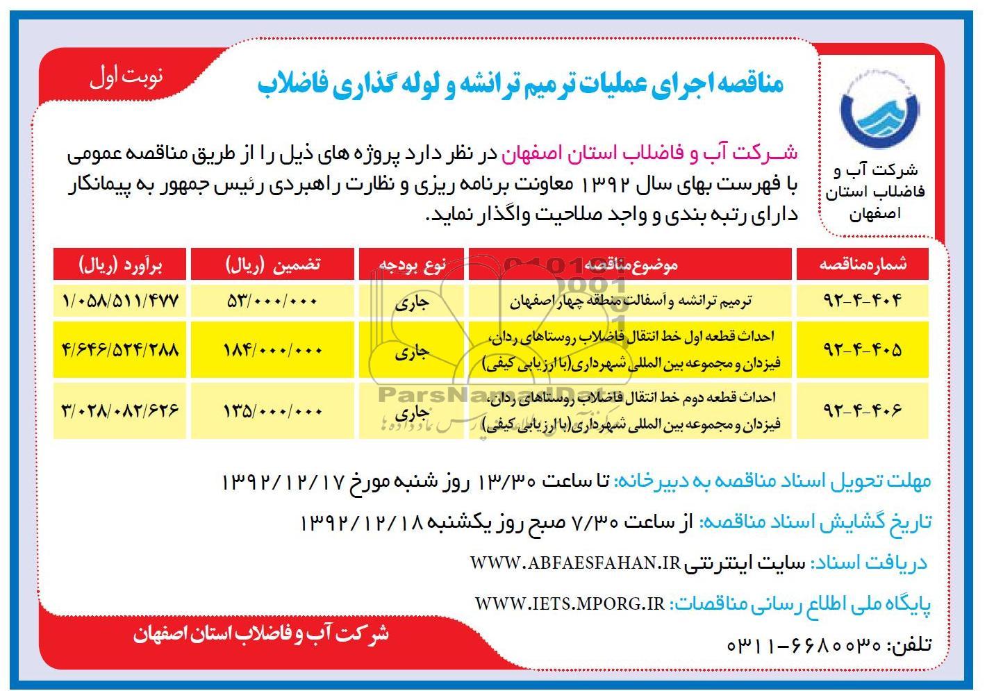 | 92-4-404 | ترمیم ترانشه و آسفالت منطقه چهار اصفهان | جاری | 53.000.000 | 1.058.511.477 |