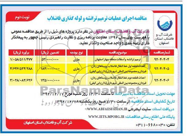 | 92-4-404 | ترمیم ترانشه و آسفالت منطقه چهار اصفهان | جاری | 53.000.000 | 1.058.511.477 |