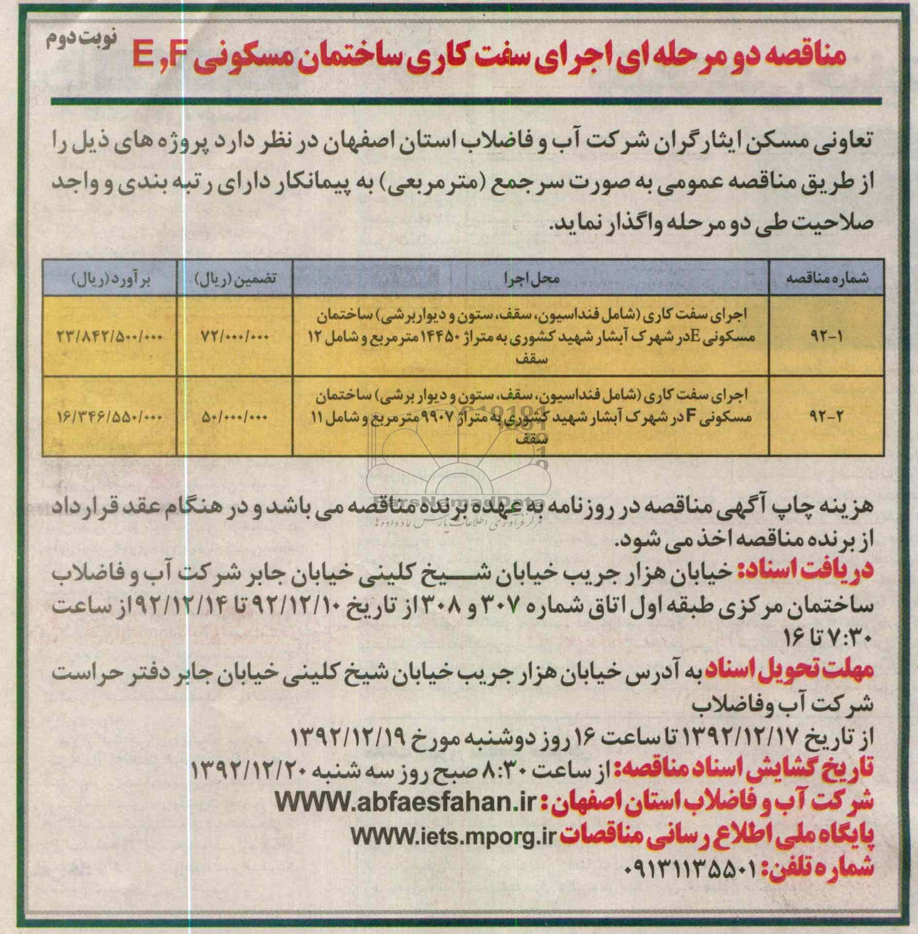 مناقصه دو مرحله ای , اجرای سفت کاری ساختمان مسکونی F ، E