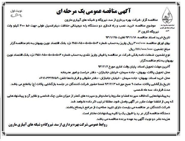 آگهی مناقصه عمومی یک مرحله ای, خرید , نصب و راه اندازی دو دستگاه رله دیجیتالی ...
