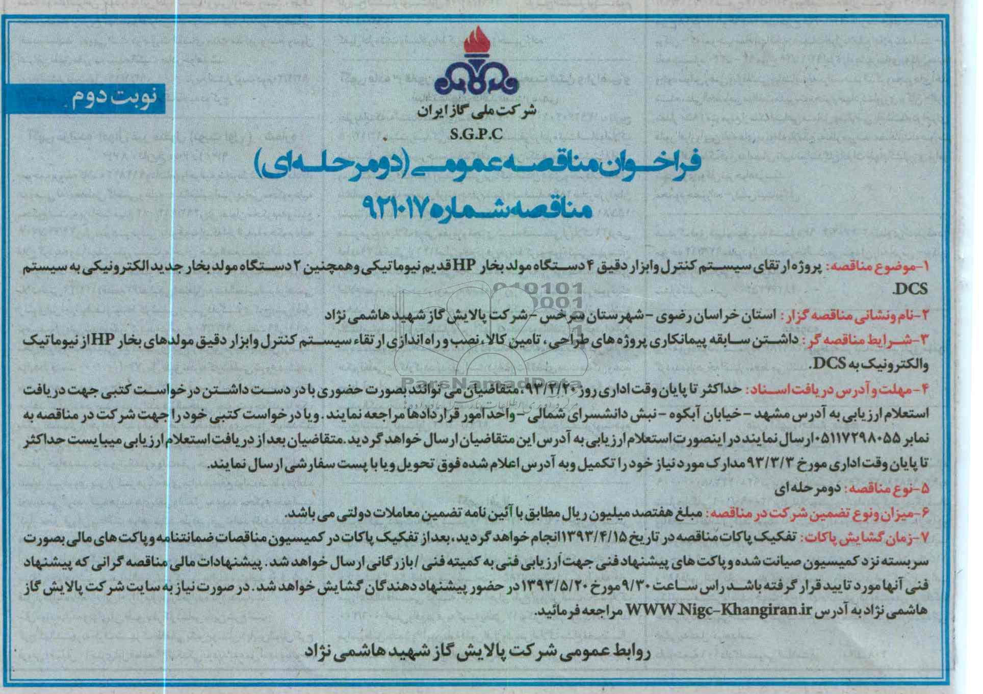 شرایط مناقصه گزار: داشتن سابقه پیمانکاری پروژه های طراحی، تامین کالا، نصب و راه اندازی ارتقاء سیستم کنترل و ابزار دقیق مولدهای بخار HP از نیوماتیک و الکترونیک به DCS.