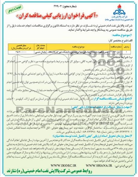 | 1/93 | تعمیر و نگهداری منازل سازمانی , اماکن عمومی و تاسیسات شهرک پالایشگاه | یک سال شمسی |