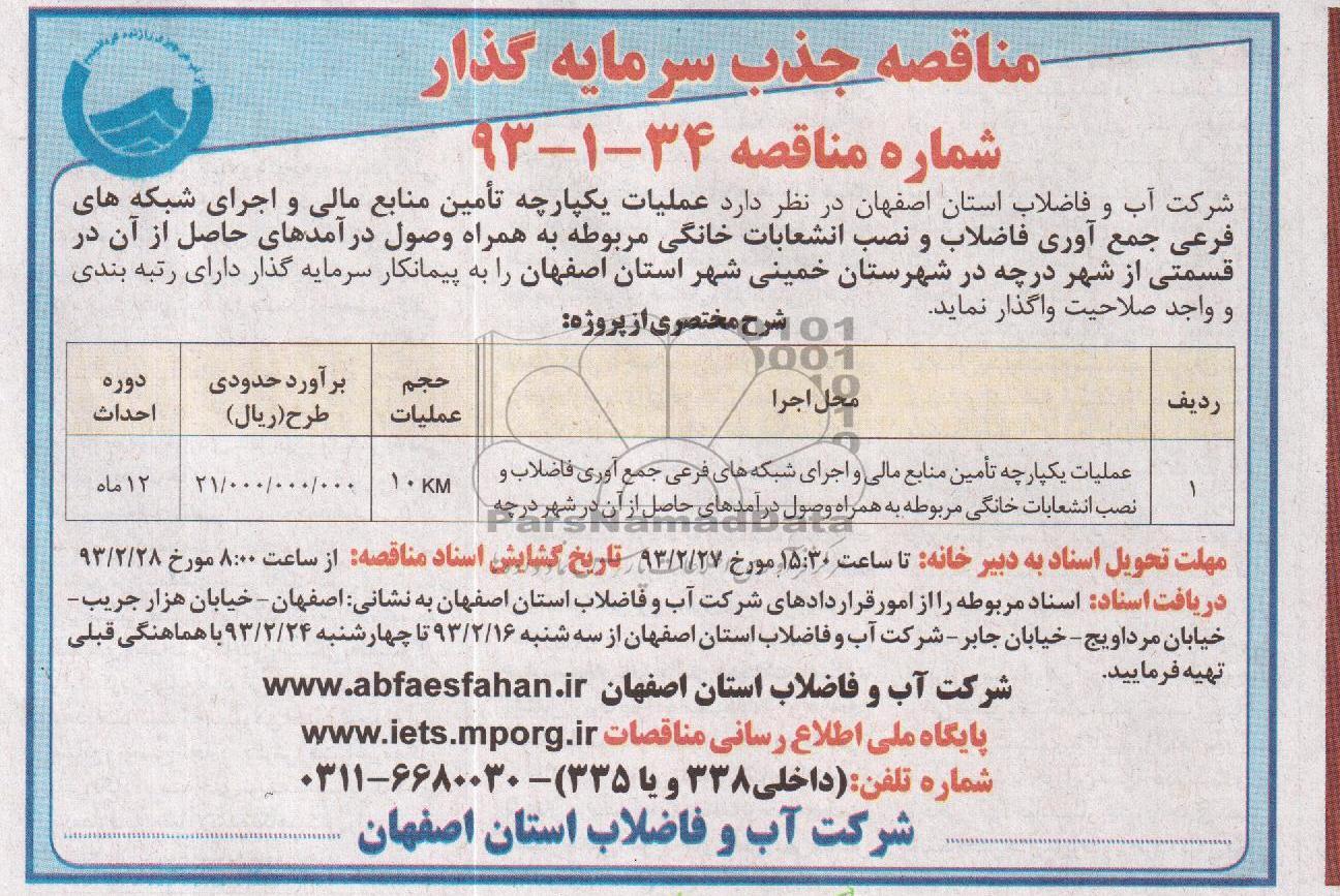 دریافت اسناد اسناد مربوطه را از اموز قراردادهای شرکت آب و فاضلاب استان اصفهان به نشانی اصفهان خیابان هزار جریب خیابان مرداویج خیابان جابر شرکت آب و فاضلاب استان اصفهان از سه شنبه مورخ 93.2.16 تا چهارشنبه 93.2.24 با هماهنگی قبلی تهیه فرمایید