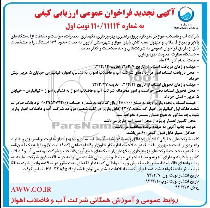 مهلت و زمان تحویل اسناد: از تاریخ 93.3.14 لغایت 93.3.27