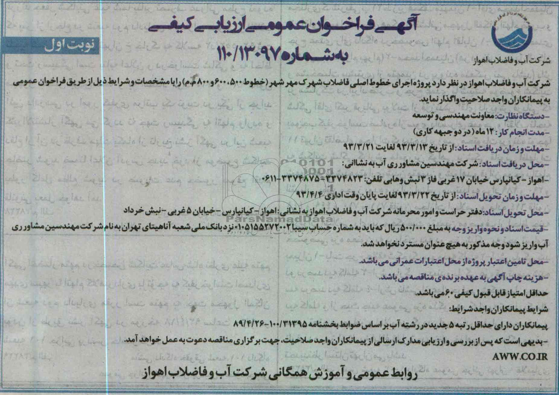 آگهی فراخوان عمومی ارزیابی کیفی مناقصه گران از کلیه افراد متخصص و شرکتها واجد شرایط دعوت به عمل میآید در مناقصه با کد خبرگزاری پارس نماد: 342143 شرکت نمایند.