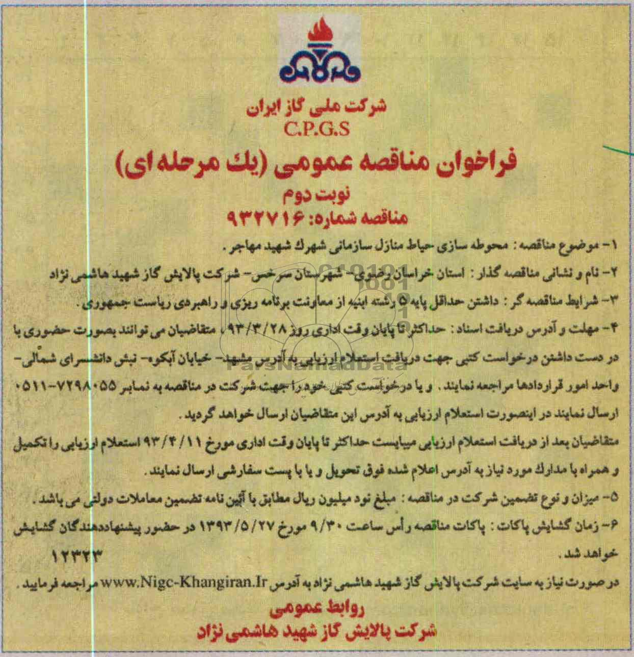 نام و نشانی مناقصه گذار: استان خراسان رضوی، شهرستان سرخس، شرکت پالایش گاز شهید هاشمی نژاد
