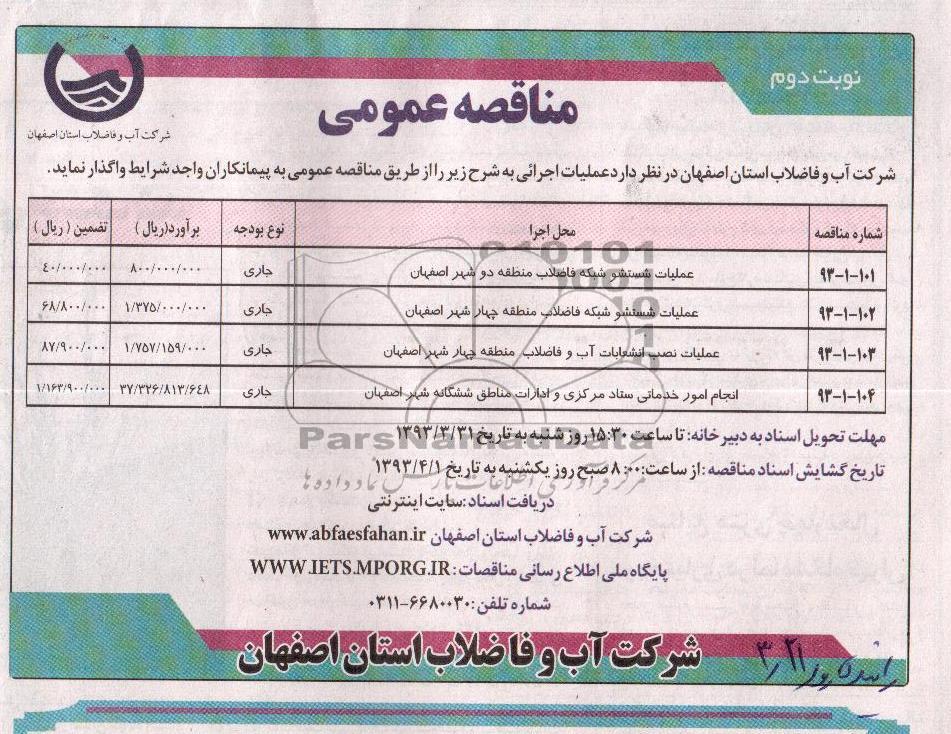 | 103-1-93 | عملیات نصب انشعابات آب و فاضلاب منطقه چهار شهر اصفهان |