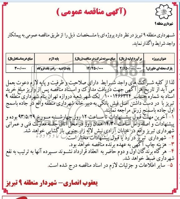 مناقصه پارک محله ای, آگهی مناقصه عمومی, مناقصه پارک محله ای