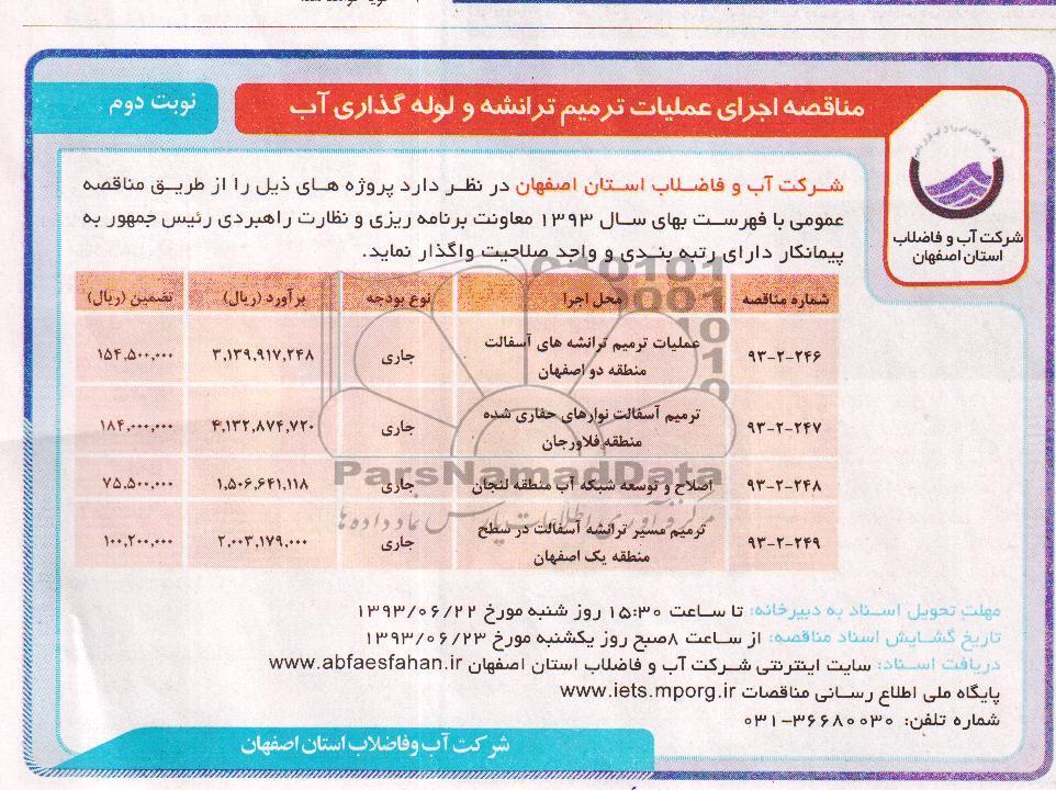 | 93-2-246 | عملیات ترمیم ترانشه های آسفالت منطقه دو اصفهان | جاری | 3.139.917.248 | 154.500.000 |
