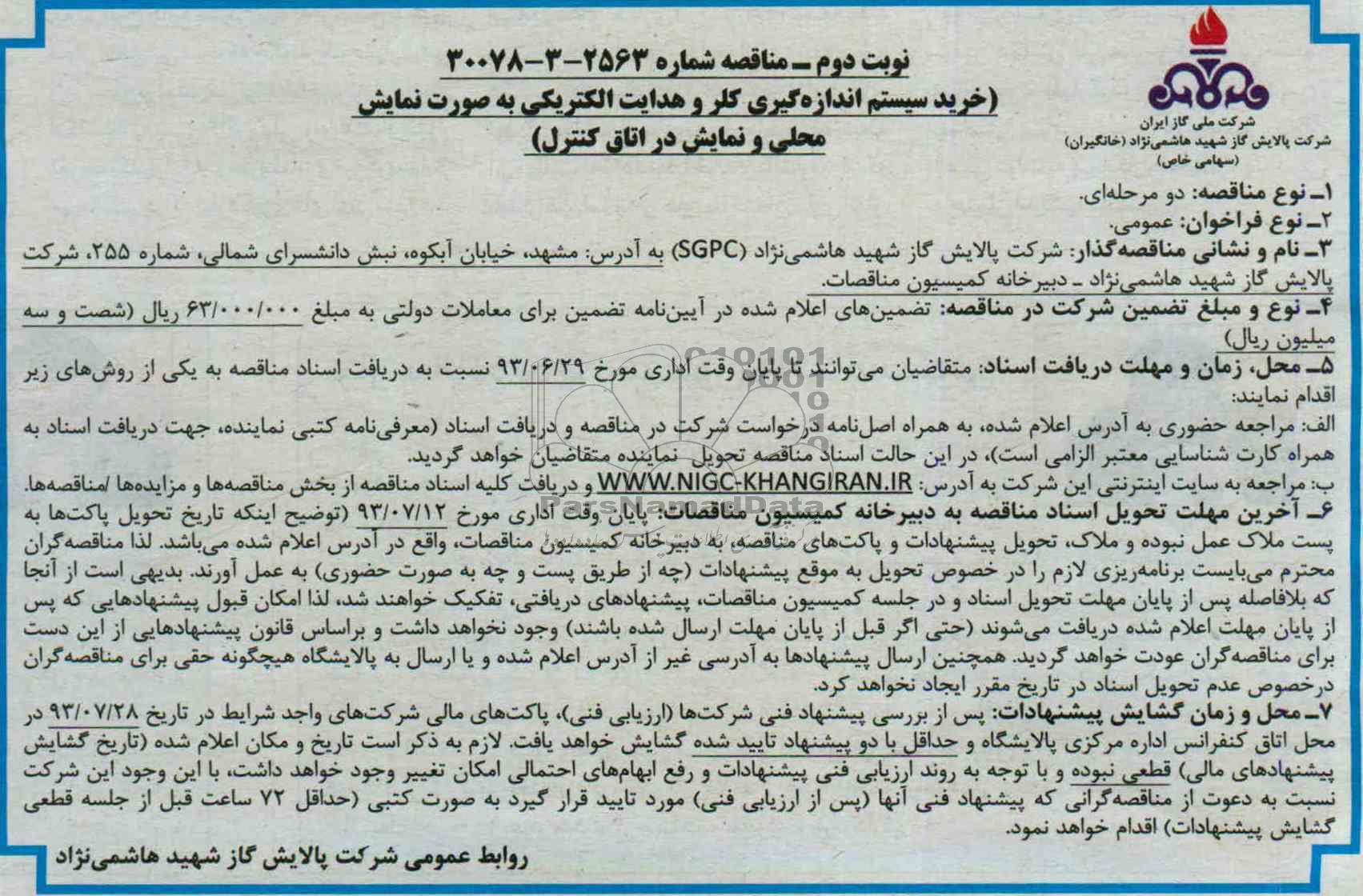 نام و نشانی مناقصه گذار: شرکت پالایش گاز شهید هاشمی نژاد SGPC
