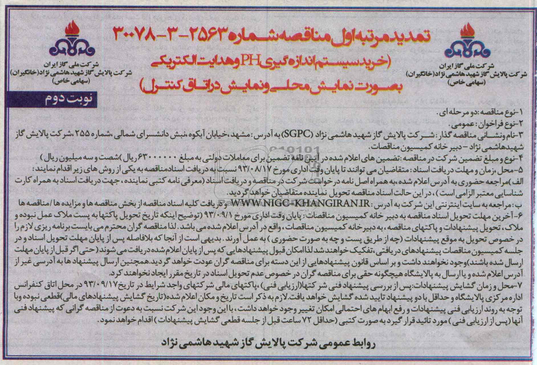 تمدید مناقصه خرید سیستم اندازه گیری PH و هدایت الکتریکی از کلیه افراد متخصص و شرکتها واجد شرایط دعوت به عمل میآید در مناقصه با کد خبرگزاری پارس نماد: 396925 شرکت نمایند.