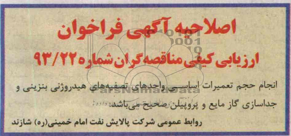 ارزیابی کیفی مناقصه گران شماره 22/93