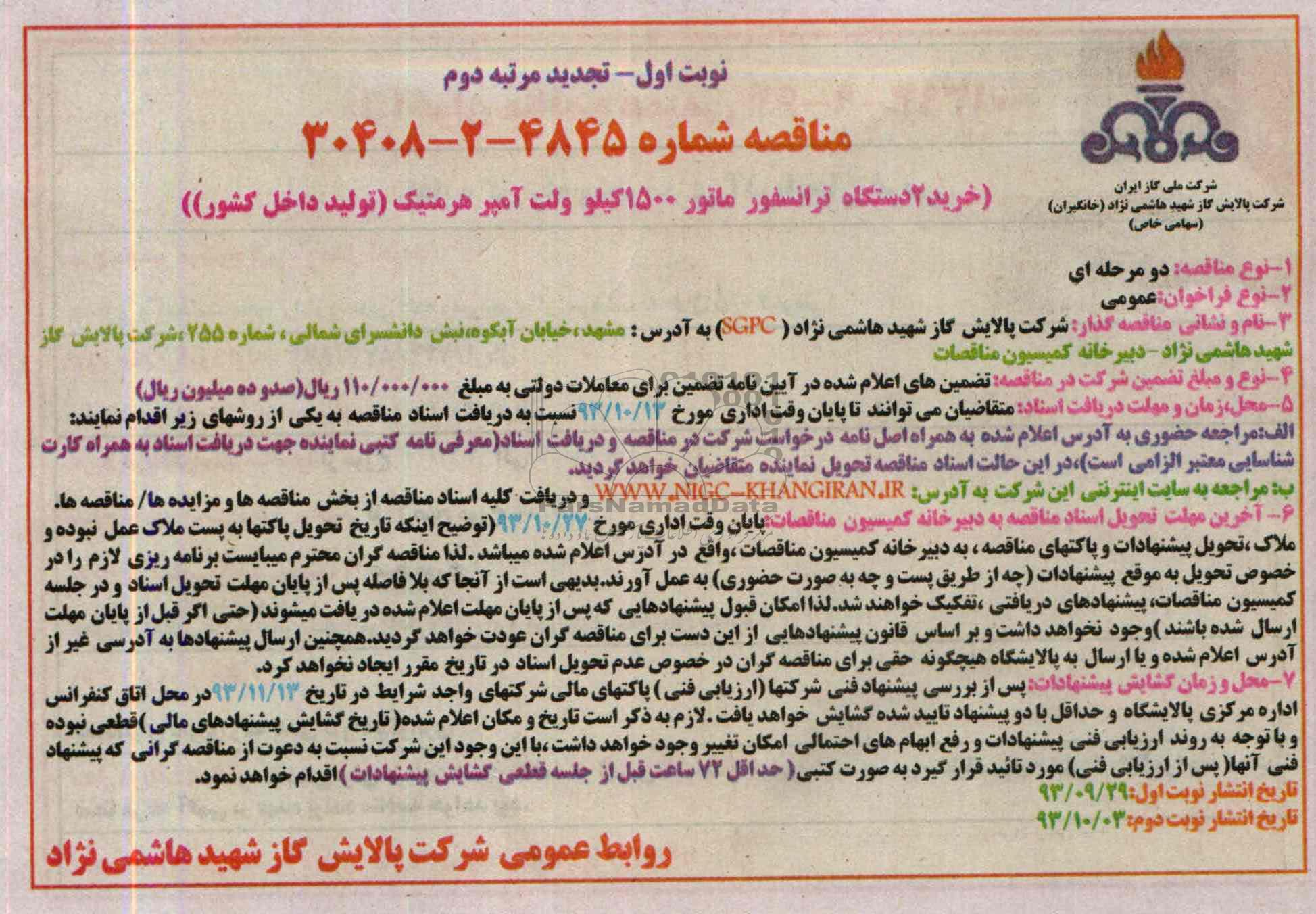 3- نام و نشانی مناقصه گزار: شرکت پالایش گاز شهید هاشمی نژاد (SGPC) به آدرس: مشهد، خیابان آبکوه، نبش دانشسرای شمالی، شماره 255، شرکت پالایش گاز شهید هاشمی نژاد، دبیرخانه کمیسیون مناقصات.