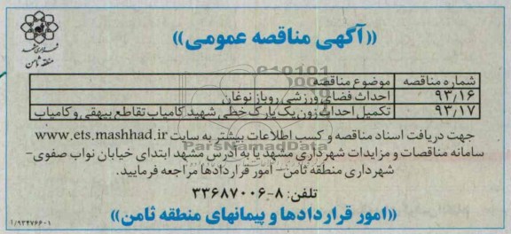 | 93/17 | تکمیل احداث زون یک پارک خطی شهید کامیاب تقاطع بیهقی و کامیاب |