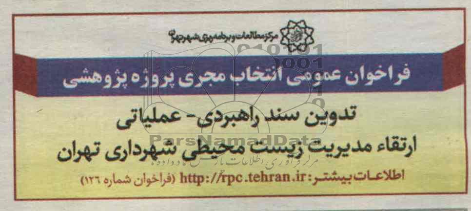 آگهی فراخوان عمومی انتخاب مجری پروژه پژوهشی از کلیه افراد متخصص و شرکتها واجد شرایط دعوت به عمل میآید در مناقصه با کد خبرگزاری پارس نماد: 419442 شرکت نمایند.