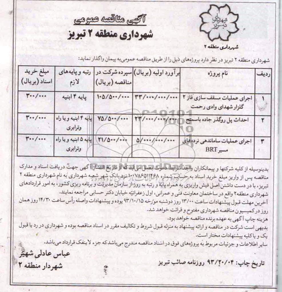 شهرداری منطقه 2 تبریز در نظر دارد پروژه های ذیل را از طریق مناقصه عمومی به پیمان واگذار نماید.