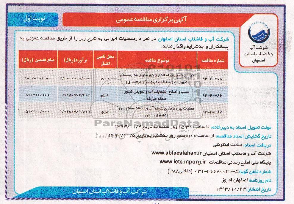 شرکت آب و فاضلاب استان اصفهان در نظر دارد عملیات اجرایی به شرح زیر را از طریق مناقصه عمومی به پیمانکاران واجد شرایط واگذار نماید